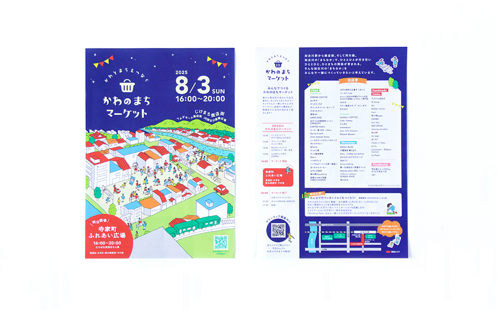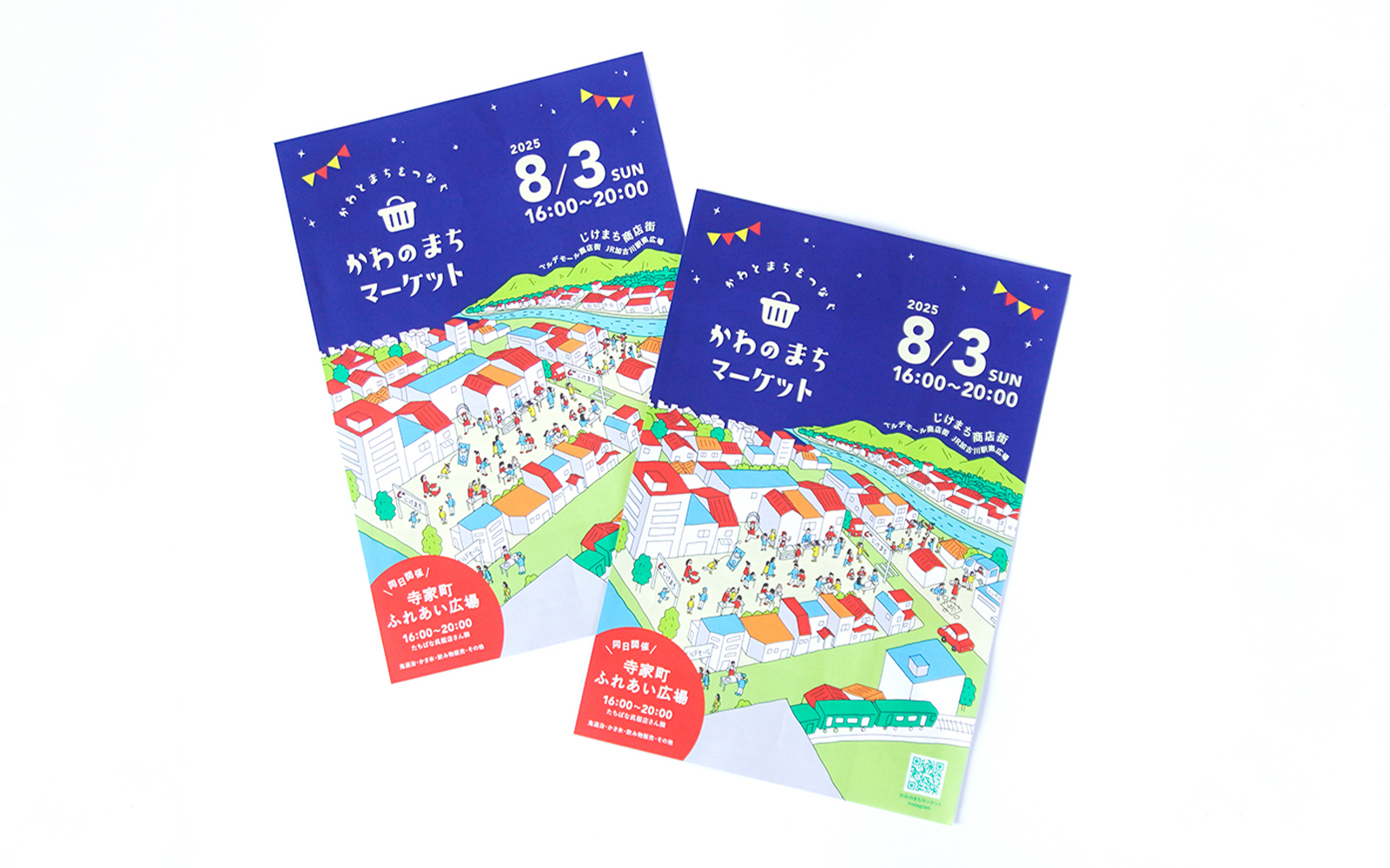 かわのまちマーケットのチラシデザインを担当いたしました。