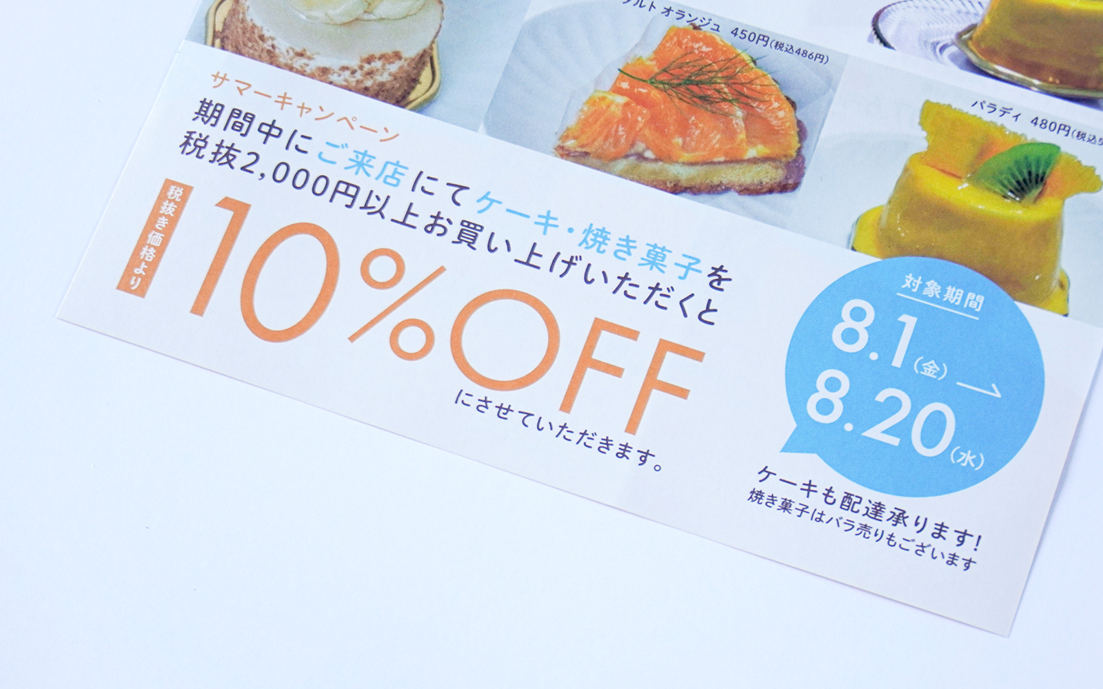税抜価格から10%OFF となるサマーキャンペーンが実施されました。